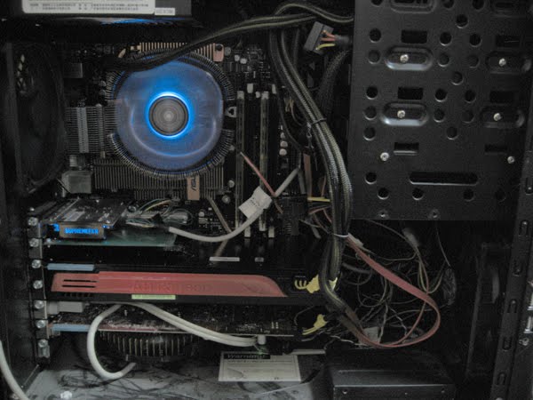 組み終わったPCを元の設置場所に戻し、各種配線類を繋ぎ…、とここで微妙に感心。R2用に出力しているモニタは実はVIERAの37インチテレビでHDMI接続なんですが、EAH3870X2ではDVI-Iから変換コネクタを噛ましてHDMI接続となっていたのに対し、EAH5870/G/2DIS/1GD5では直接、HDMIケーブルが挿せます。仕様としてはDVI-Iが2基、HDMIとディスプレイポートが各1基なんですね。何年かすると、DVIなんてもう見ることは無くなっちゃうのかなぁと思ってしまったひとコマでした。